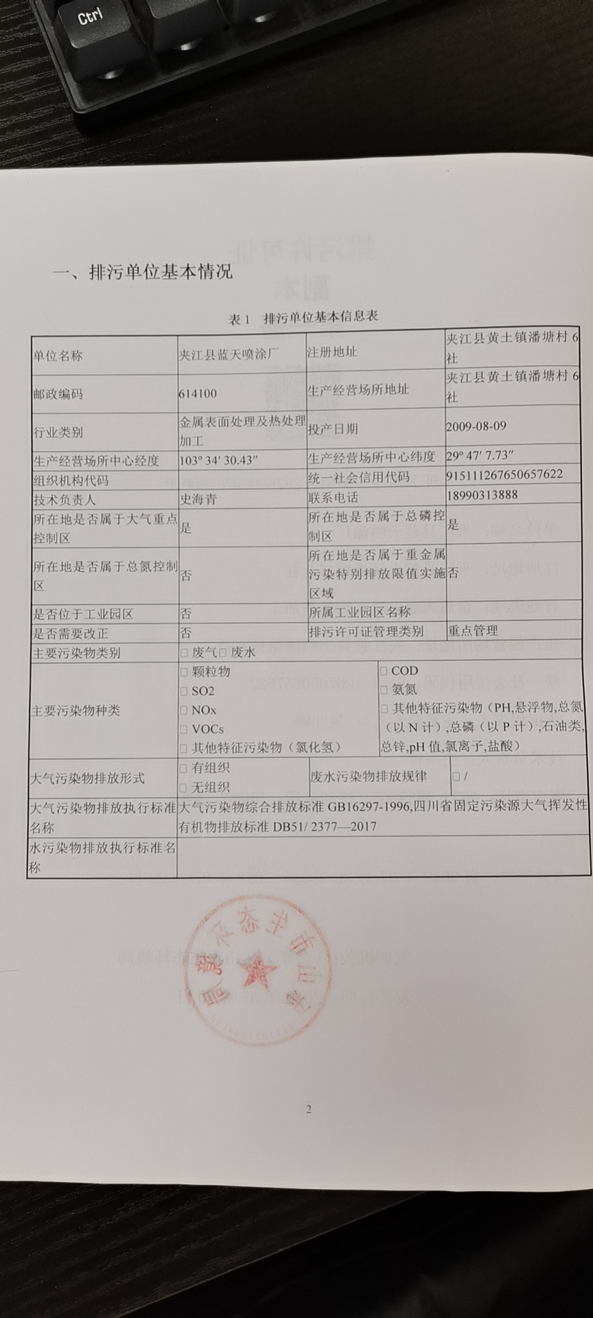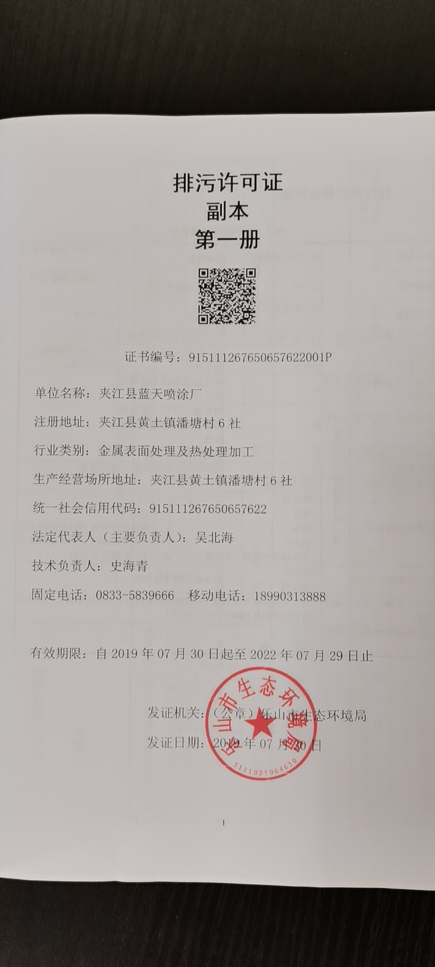 排污许可盖章页