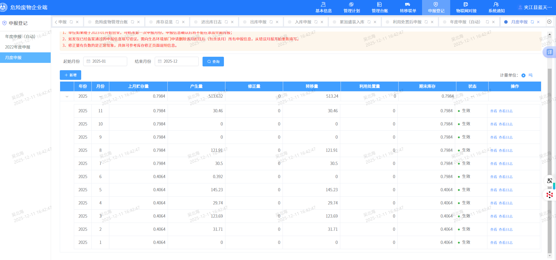 2025危险废物环境信息公示